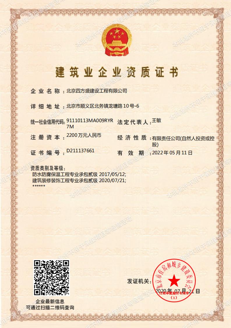 我公司喜获建筑装修装饰工程专业承包贰级资质